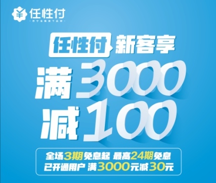 作为苏宁金融旗下消费分期平台,基于苏宁购物生态,任性付将持续推出各种优惠活动,为广大消费者送去福利。先享后付、最高24期免息、叠加满减,一键申请即可享受,分期买好的,心仪的宝贝不用等待。