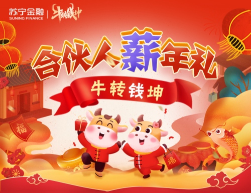 本次合伙人“薪”年礼是苏宁金融“牛转钱坤”年货节活动的重要部分,在给大家提供普惠金融服务、增加财运的同时,更寄托了祈盼牛年一切更上一层楼的美好祝愿。目前活动正火热进行中,欢迎大家下载苏宁金融APP参与体验。