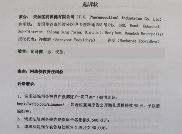 近日,独立学者、社会评论家司马南“因言获罪”惹上大麻烦。泰国天丝医药保健有限公司(泰国天丝)以网络侵权责任纠纷为由将司马南告上互联网法庭,认为司马南在去年的视频评论侵犯了泰国天丝名誉,要求赔偿 500 万元并公开赔礼道歉。