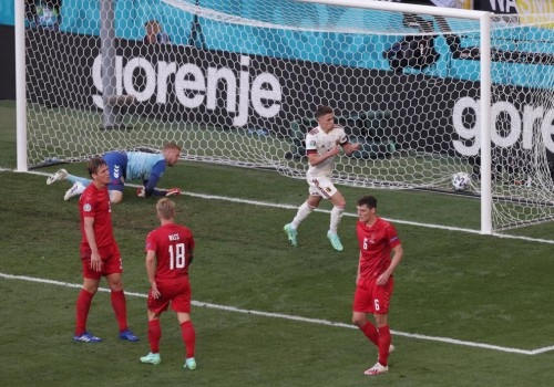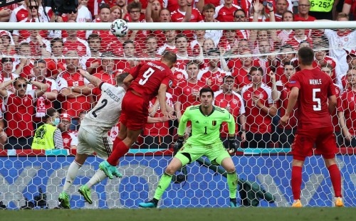 丹麦队在主场球队的助威下,奋起反击。最终在第86分钟,布莱斯维特头球击中横梁后弹出,最终1比2负于比利时。