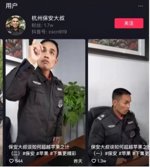 可是,真去找这个视频出处,就会发现驴唇不对马嘴之处。原来,这视频是网红“杭州保安大叔”的搞笑视频。视频出处是。