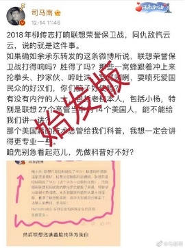 “司马南”在12月14日发布一则微博,并附上华为“余承东”的微博图片。这则微博所提及的事件涉及“华为和联想的5G网络投票”。但广大火眼金睛的网友发现,“司马南”发布的“余承东”微博图片疑似伪造!在今天下午,司马南删除了这张伪造的微博图片。