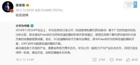 文字的大意是,在2016年的3GPP会议上,55家公司共同提出了要用华为的Polar代码作为5G网络信道编码机制,联想和旗下摩托罗拉公司都为华为投上了赞同票。司马南一看他这个造谣不经打,赶紧删之大吉,他多贼呀!